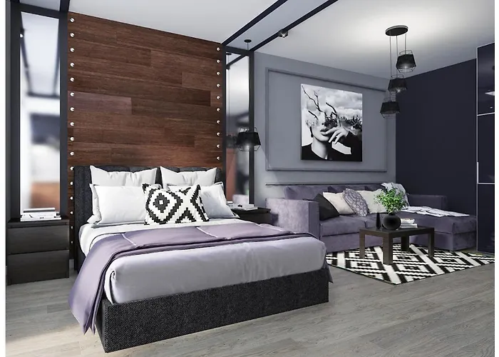 Наряду с кофеваркой на оснащённой всем необходимым кухне предоставляются электрочайник, холодильник и кухонная утварь. Апартаменты находятся в Киеве, в 10 км от аэропорта Киев им. И. И. Сикорского.